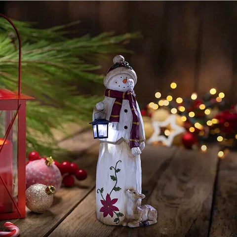 🎅 Holidays are a time for giving. Our cheerful Woodland Snowman with Solar Lantern makes any holiday display merrier, whether it's on the porch or indoors. Sturdy resin snowman decoration has the look of carved wood and sports a snow hat with holly, red scarf and a friendly smile.