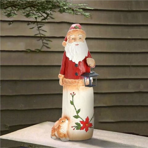 🎅 Surprise your friends and neighbors with our Santa and Snowman Sculpture with Solar Lantern. This charming piece is crafted from wood-like resin, giving it a hand-carved look. Santa is lighting the way for his snowman friend while they carol from door to door.