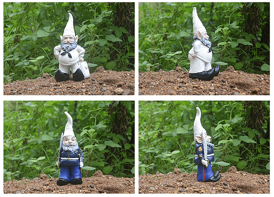 Coatings Coatings - The garden gnome is hand-painted and has a protective coating to ensure that it will not fade in the sun and water.